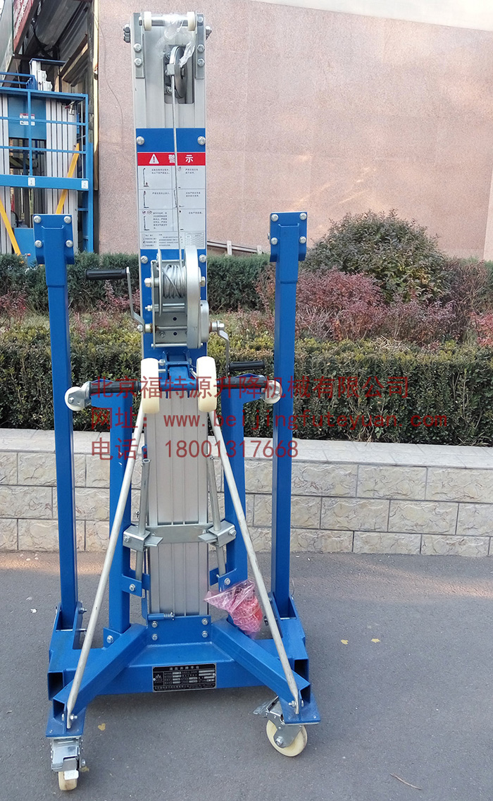 手搖升降機:又名手動物料機,手搖物料機。主要用于展覽搭建,舞臺燈光,音響懸掛,產品宣傳展示等等。手搖升降機好處:提高一些高空作業的效率。