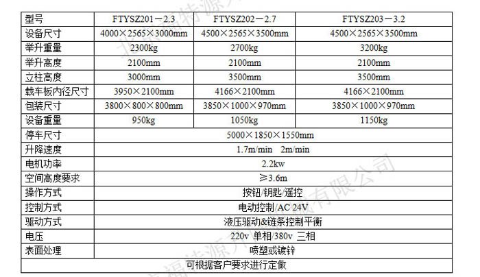 ▍汽車舉升機常規(guī)參數(shù) / Product Parameter