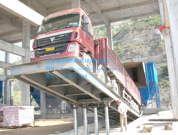 卸貨機(jī)平臺(tái)又稱:汽車卸料機(jī)、卸貨平臺(tái)、側(cè)翻散料卸貨機(jī).