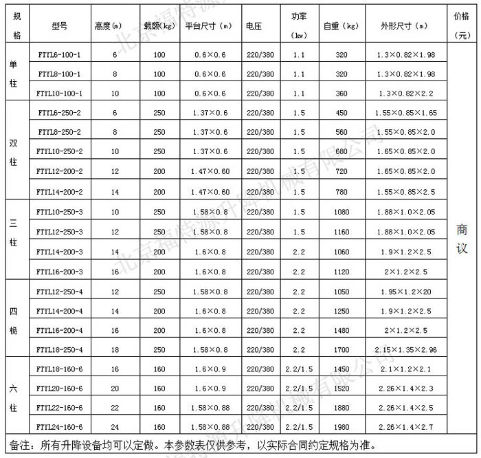▍鋁合金升降機(jī)常規(guī)參數(shù) / Product Parameter