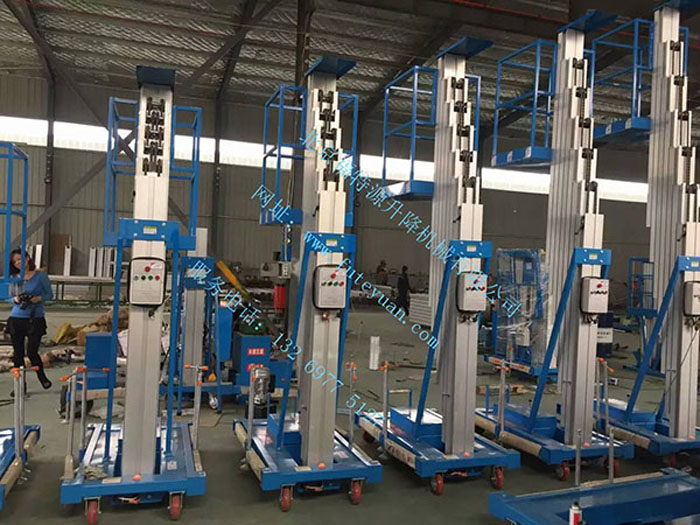 通常有單柱、雙柱、三柱、四柱、六柱等形式,根據(jù)需要可以加裝輔助行走裝置,為了放過通過低矮的通道可以定做為可斜式,還可以安裝到汽車、電瓶車等方便高空作業(yè)使用。