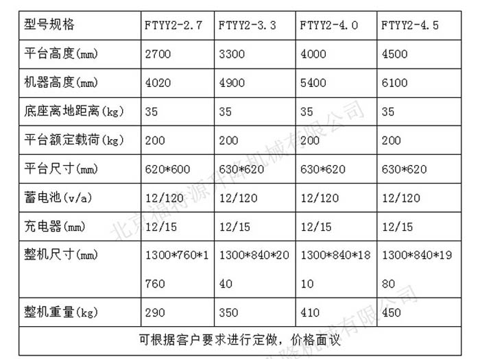 ▍全電動高空工具車常規(guī)參數(shù) / Product Parameter